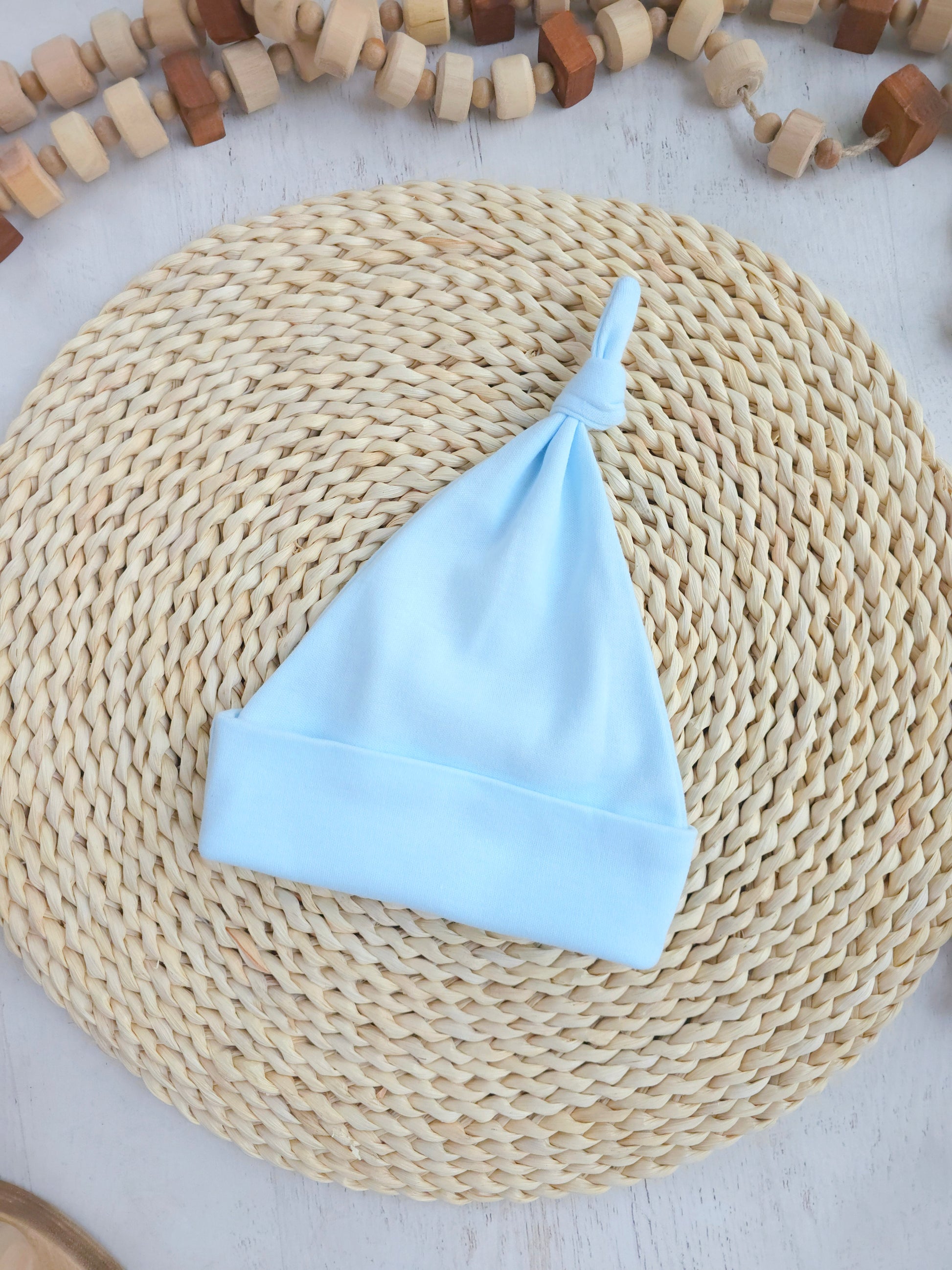 Introducing our baby boy knotted hat, made with super soft fabric that makes it perfect for matching outfits in all sorts of colors. Whether you're looking to add to your little one's wardrobe, or purchase wholesale for your business, this hat is a must-have. Say goodbye to uncomfortable hats and hello to style and comfort!